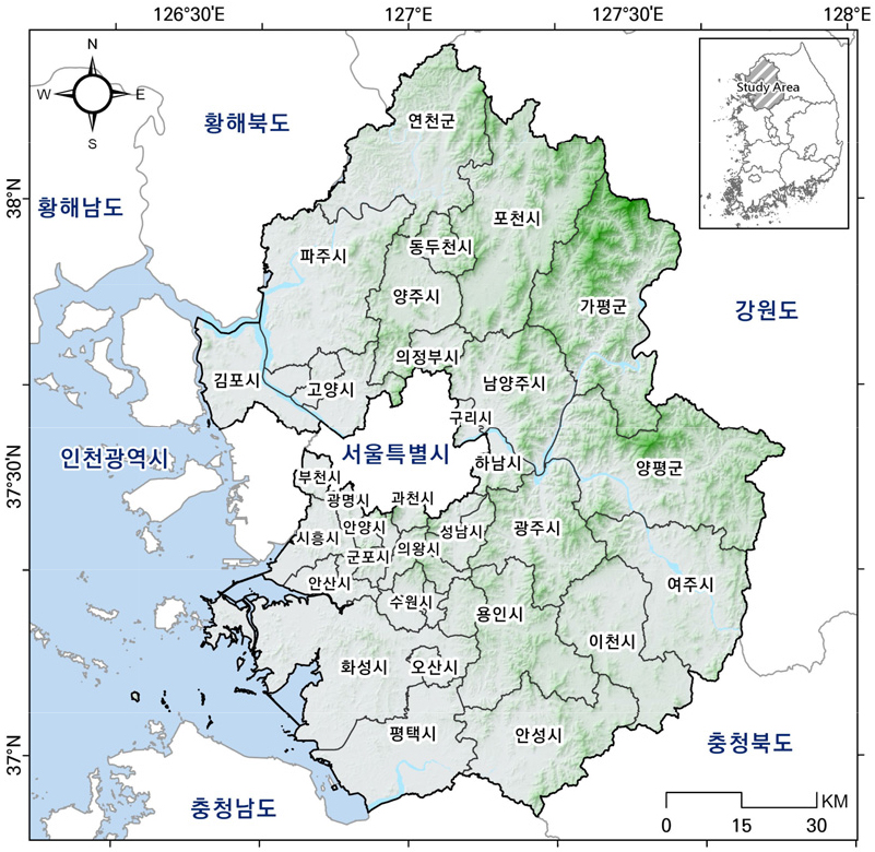 - This study analyzes the spatial distribution characteristics of Funeral songs transmitted in the Gyeonggi-do region and, through this, analyzes the cultural-geographic characteristics of Funeral songs. Specifically, the spatial distribution characteristics of the representative ‘Unsang-sori’ types, including ‘One-phrase spoken word type’, ‘Two-phrase overlapping type’, and ‘Non-overlapping Eoyina-gal-kka type’, were analyzed using GIS-based kernel density analysis. Research results show that by type, the ‘one-phrase spoken language type’ was concentrated in the northern inland and southwestern plains, the ‘two-phrase or more spoken language type’ in the northern border regions and southern gentle slopes and foothills, and the ‘non-phrase spoken language type’ in the southeastern and Chungcheong border regions. These type-specific differences are believed to be closely related to a complex interplay of factors such as terrain, livelihood, burial culture, and networks of exchange with neighboring cultural regions. This study shows that the distribution and spread of local folk songs are formed not just by differences in musical style, but within the context of the local environment and cultural background. This study is expected to expand the possibilities for interdisciplinary research between cultural geography, folklore, and musicology, and to provide basic data for establishing strategies for the preservation and transmission of local folk songs.